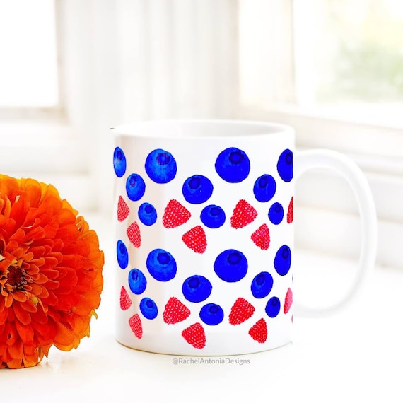 40 Off Clearance Sale Blueberry Mug Summer Fruit Mug Summer Vibes Whimsical Gifts Cute Mugs Summer Home Decor Red White And Blue