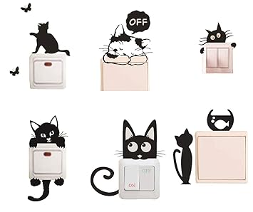 Details About Black Switch Stickers Wall Sticker Shock Electric Cat I7z2